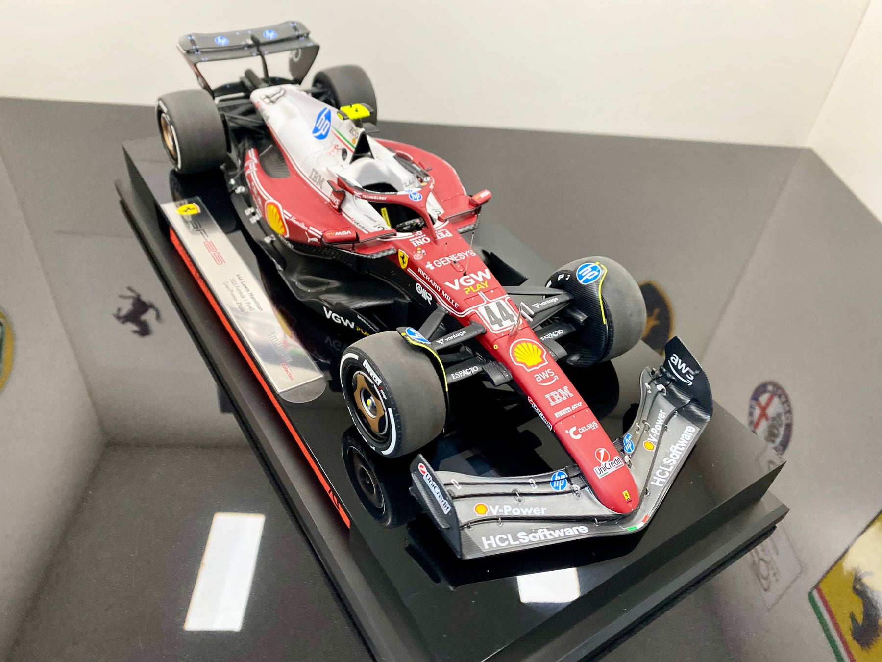 #44 IN STOCK NOW BEAND NEW RELEASE Monza livery (#44 in stock, #16 available end Feb 26) to celebrate 50 years since Niki Lauda won the world championship in the 312T high air box Ferrari with the white top and Italian flag stripes. A real collectors item not to be missed.